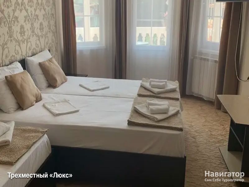 Типы номеров: двухместный «Люкс», трёхместный «Люкс», четырёхместный «Люкс», двухкомнатный «Люкс».