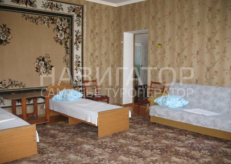 К размещению предлагаются две 4-х местные, одна 3-х и одна 2-х местные комнаты, расположенные на первом этаже дома. Все комнаты раздельные. Вход в комнаты через общий холл, в котором имеется мягкое кресло и телевизор со спутниковой антенной.