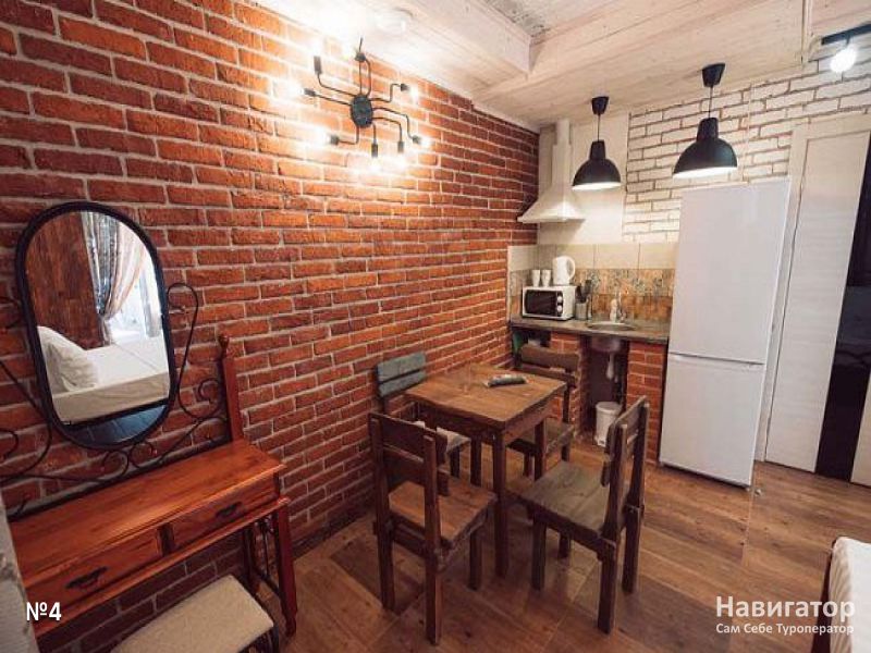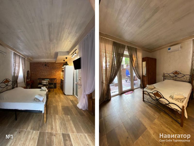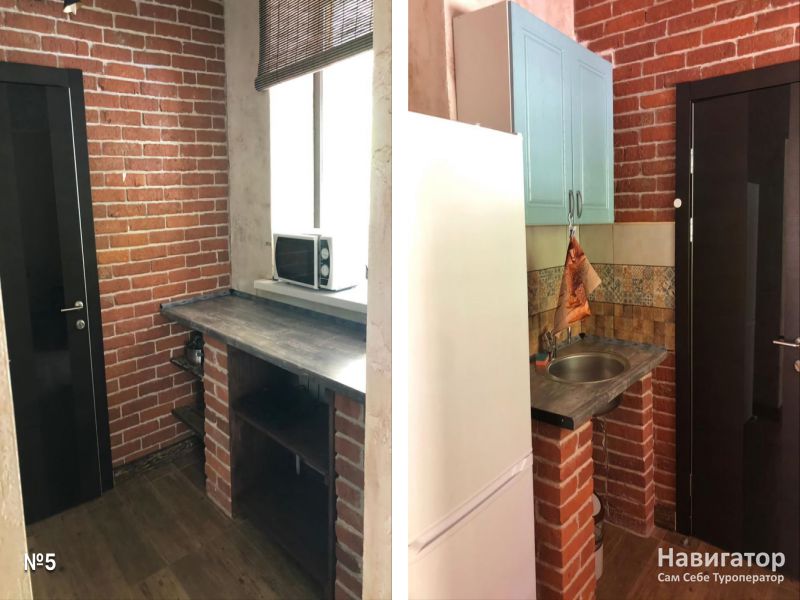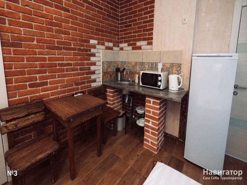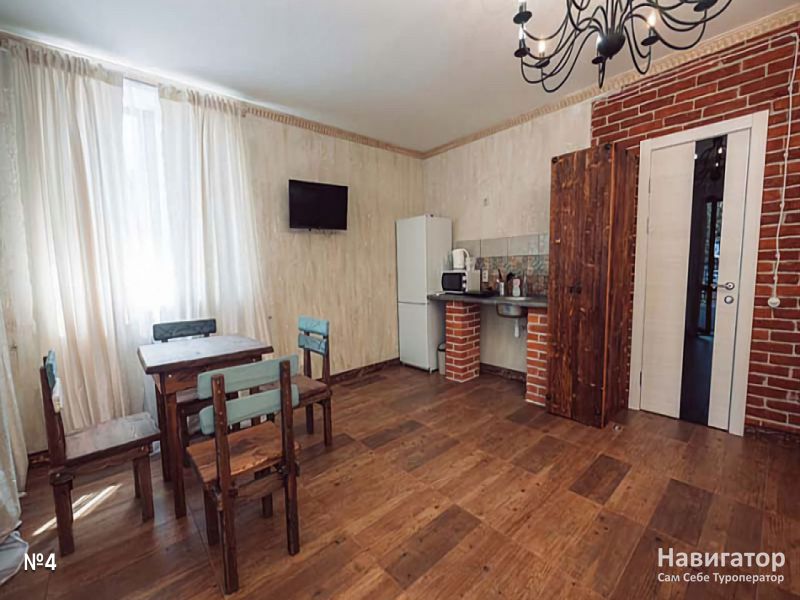 Апартаменты 4-х местные, 45 кв.м. С отдельным входом и просторной оборудованной кухней. Между спальней и кухней арка.