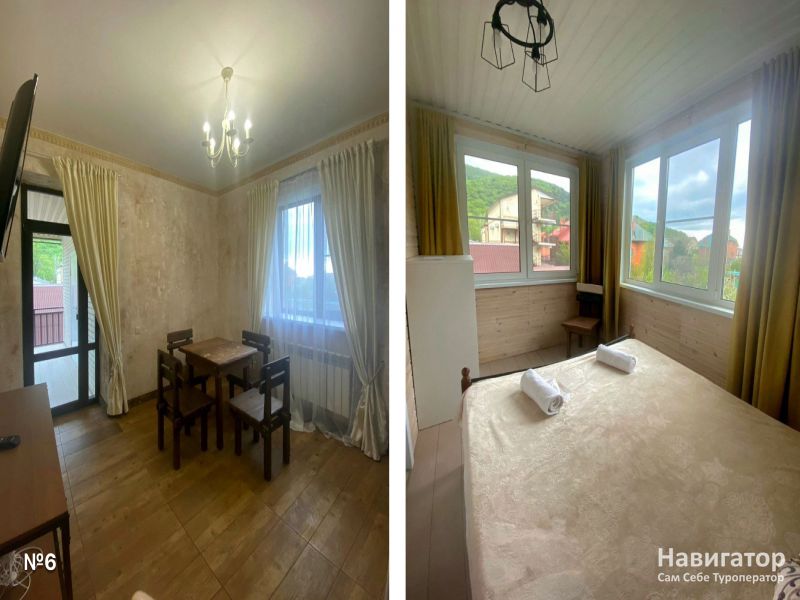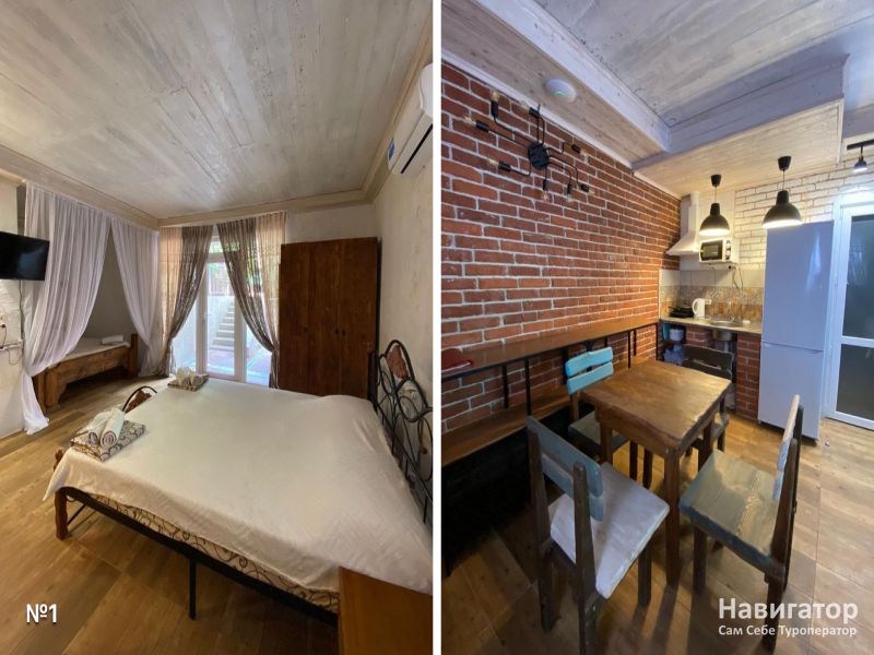 Каждый коттедж и апартаменты полностью автономны. В вашем распоряжении собственная кухня со всей необходимой посудой и техникой, отдельная терраса или беседка с мебелью, мягкие кровати, вместительные шкафы, телевизоры. Постельное бельё и полотенца предоставляются. Из окон открывается живописный вид на горы и море.