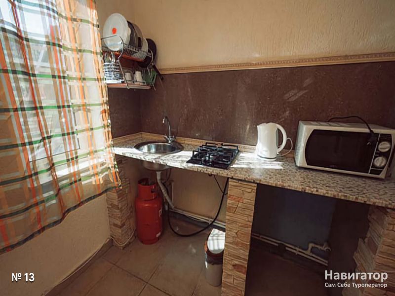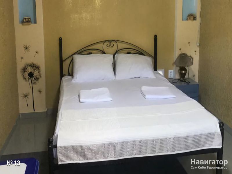 №13 Апартаменты 4-х местные, 35 кв.м. Отдельная просторная оборудованная кухня, санузел и душ. В комнате: двуспальная кровать, двуспальный диван, тумбочки, телевизор, шкаф, стол и стулья, сплит-система. Отдельный вход.