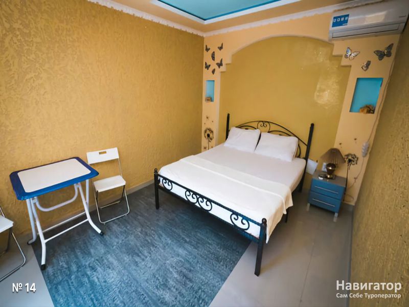 №14 Номер-студия 2-х местный, 22 кв.м. В комнате: двуспальная кровать, тумбочка, шкаф, стол и стулья, сплит-система. Зона кухни, санузел и душ. Отдельный вход, 2 этаж.